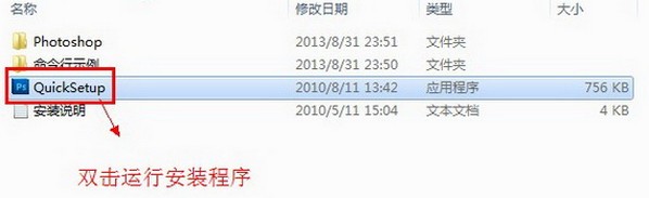 雙擊“QuickSetup”安裝程序以開(kāi)始Photoshop CS5的安裝過(guò)程。