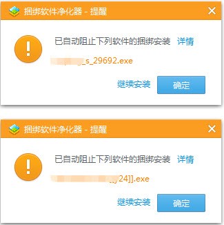 筆者在安裝某視頻播放器時(shí),發(fā)現(xiàn)裝有“捆綁軟件清理工具”的系統(tǒng)自動(dòng)提示了捆綁安裝的行為。