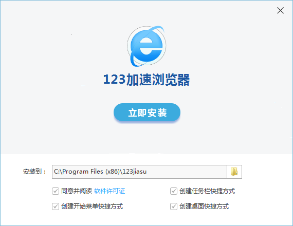 1. 雙擊打開kkx提供的123加速瀏覽器安裝包,啟動安裝程序并選擇軟件的安裝路徑。