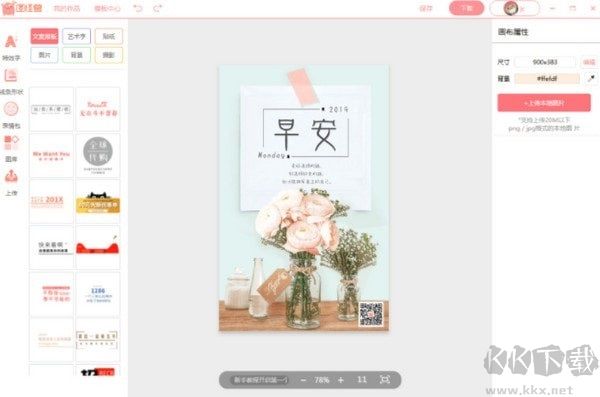 該軟件支持多場景展示,并提供多種創(chuàng)意方案,用戶可以根據(jù)需求自由選擇。平臺內(nèi)有豐富的在線模板,操作界面流暢且實(shí)用。圖像編輯功能非常高清,能夠細(xì)致地查看圖片和進(jìn)行Logo設(shè)計(jì),同時特效文字功能也表現(xiàn)優(yōu)秀。