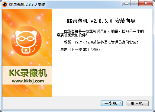 1. 訪問(wèn)本站下載KK錄像機(jī),打開(kāi)安裝程序,點(diǎn)擊“下一步”繼續(xù)安裝。