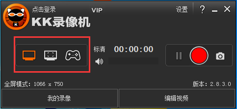 KK錄像機(jī)提供三種不同的錄制模式,根據(jù)錄制對(duì)象選擇合適的模式。錄制前請(qǐng)選擇對(duì)應(yīng)模式。