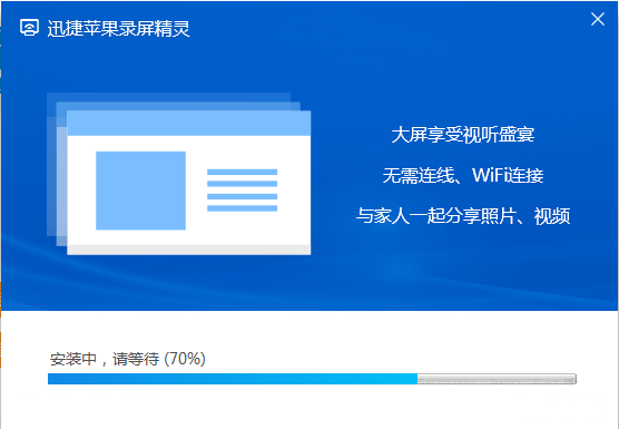 2. 無需連接數(shù)據(jù)線,WiFi即可實(shí)現(xiàn)大屏顯示,和家人一起輕松分享照片和視頻。稍等片刻,安裝即可完成。