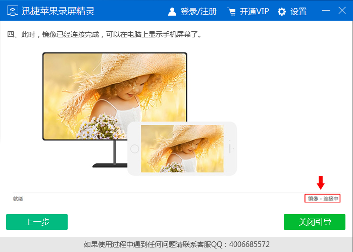 3. 連接成功后,屏幕顯示“鏡像-連接中”。