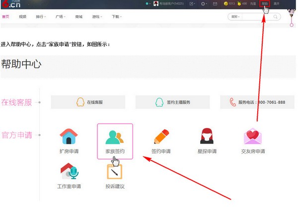 查看右上角的用戶信息,點擊“幫助”按鈕進入幫助中心,點擊“家族申請”按鈕,按照頁面提示操作。