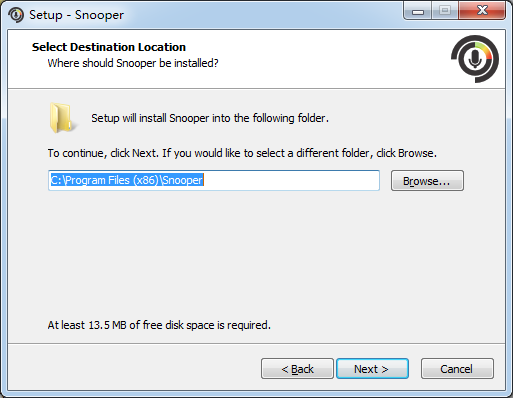 請(qǐng)確定Snooper安裝到哪個(gè)文件夾中。安裝程序默認(rèn)安裝到以下目錄。如需更改,點(diǎn)擊“Browse”進(jìn)行選擇。