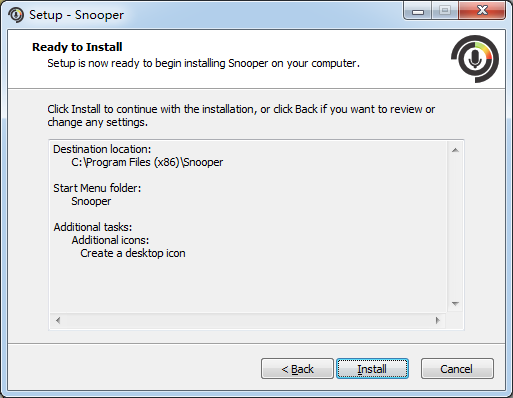 安裝程序已準(zhǔn)備好開始安裝Snooper。