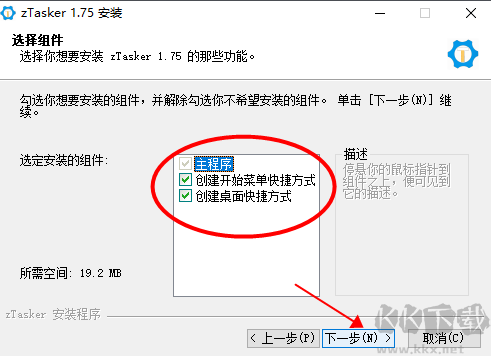 6、選擇安裝組件并點(diǎn)擊“下一步”。