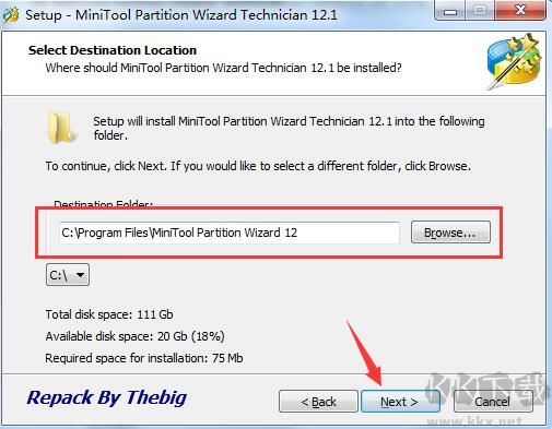 6、選擇程序安裝位置后,點擊“Next”繼續(xù);