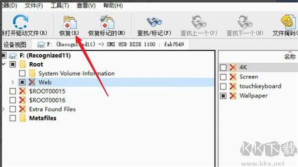 2、插入需要恢復(fù)數(shù)據(jù)的設(shè)備(如U盤或硬盤)。例如,如果你要恢復(fù)U盤中的文件,插入U盤后,設(shè)備列表中會顯示該磁盤。