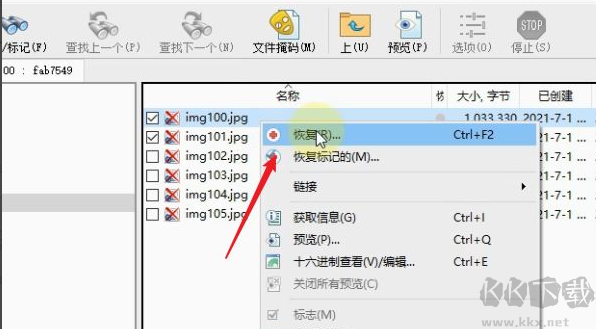 7、勾選需要恢復(fù)的文件,右鍵點擊并選擇“恢復(fù)”選項,設(shè)置新的保存路徑。