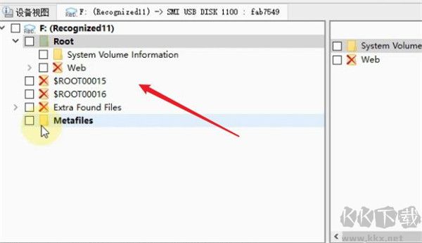 6、掃描完成后,在左側(cè)設(shè)備列表中會看到U盤的多個選項,包括原始文件和掃描到的文件,文件名稱的顏色有所不同,選擇橙色文件名稱即可查看。