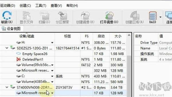 2、在軟件的設(shè)備視圖中,查看所有磁盤的列表,選擇要恢復(fù)的盤符,右側(cè)會顯示該磁盤的詳細(xì)信息。