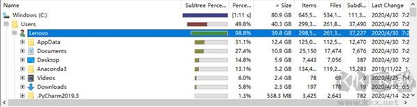 8、提供子樹百分比顯示,幫助用戶了解子目錄占用空間的比例。