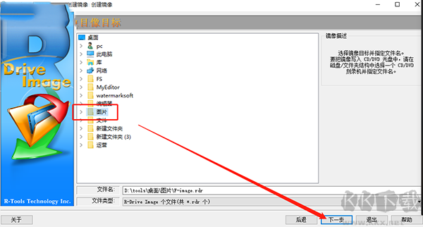 3、點(diǎn)擊“下一步”后,進(jìn)入選擇鏡像文件保存位置的界面。在此步驟中,選擇一個(gè)合適的位置保存鏡像文件,選擇完成后,點(diǎn)擊“下一步”繼續(xù)。