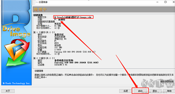 6、接著進(jìn)入確認(rèn)界面,在此可以查看鏡像文件的名稱、存儲(chǔ)路徑以及備份對(duì)象。確認(rèn)無(wú)誤后,點(diǎn)擊右下角的“啟動(dòng)”按鈕,開(kāi)始創(chuàng)建鏡像文件。