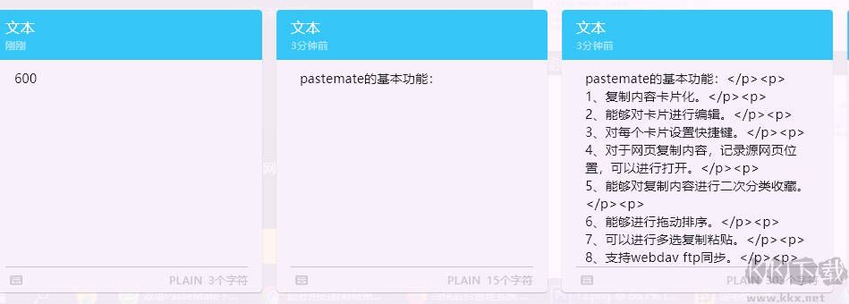 1、復(fù)制內(nèi)容以卡片形式呈現(xiàn)。