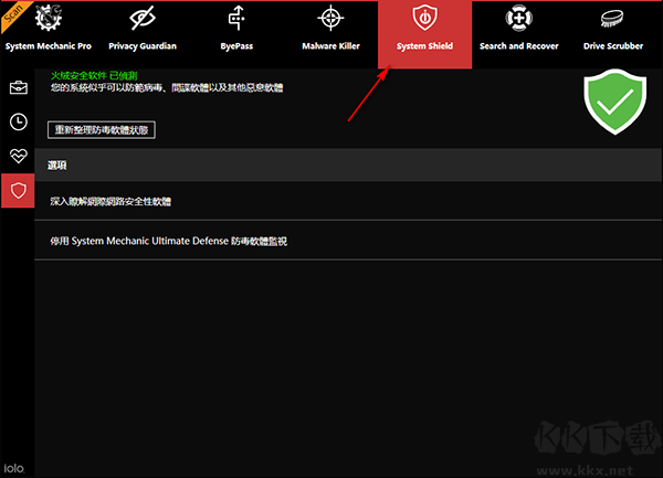 5、通過(guò)“System Shield”功能,用戶可以查看系統(tǒng)是否已經(jīng)啟用了殺毒軟件,保護(hù)電腦免受病毒侵害。