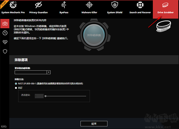 3、頂部顯示了多個(gè)工具選項(xiàng),其中“Drive Scrubber”是設(shè)備清理功能,能夠掃描并清理磁盤(pán)上的所有無(wú)用數(shù)據(jù)。