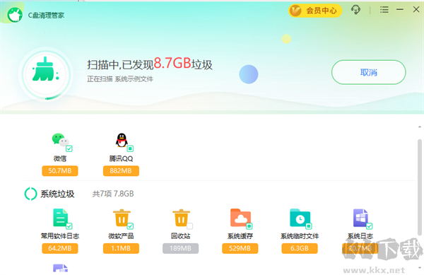 3、垃圾清理:能清理各種軟件產(chǎn)生的緩存文件,包括系統(tǒng)和社交軟件等,幫助你騰出更多空間。