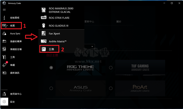 2. 進(jìn)入Armoury Crate菜單,點(diǎn)擊[設(shè)備],然后選擇[宏],如圖所示: