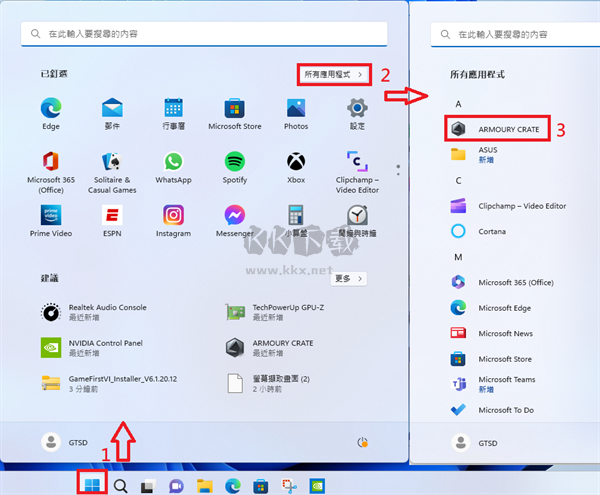 1. 在Windows系統(tǒng)中,點(diǎn)擊開始菜單,找到Armoury Crate軟件并打開,如下圖所示: