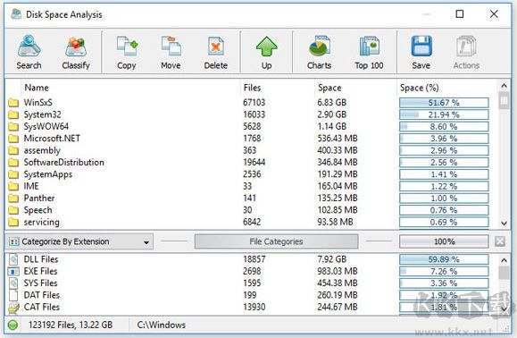 DiskBoss具備強大的磁盤空間分析功能,用戶可以快速分析本地磁盤、網絡共享或NAS存儲設備,識別占用大量空間的文件和文件夾。它還可以生成多種類型的餅圖,并將空間使用分析報告保存下來。