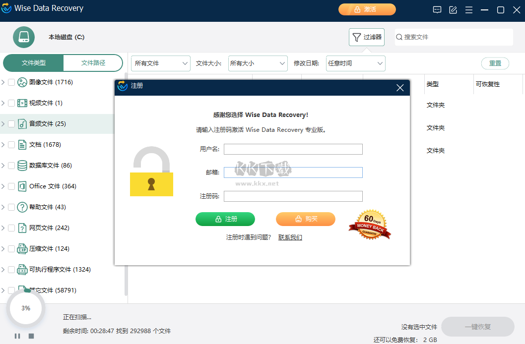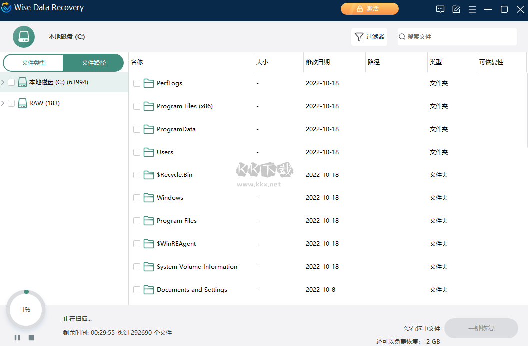 得益于快速掃描模式,Wise Data Recovery可以迅速完成文件掃描,為你節(jié)省時(shí)間。同時(shí),還可以通過輸入關(guān)鍵字或者選擇特定文件類型來精確查找需要恢復(fù)的文件。