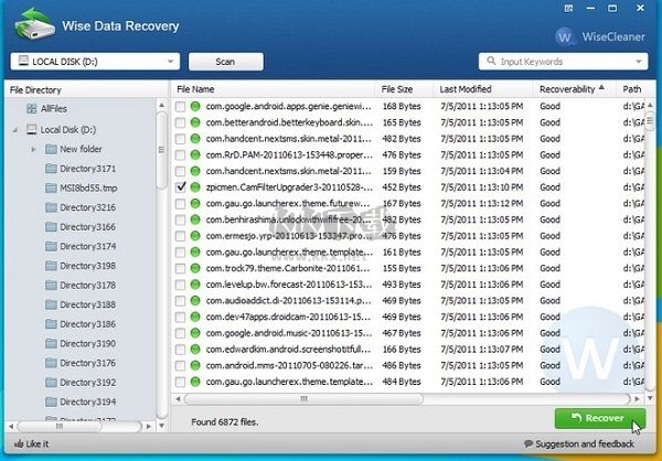 無論是NTFS還是FAT格式的硬盤、U盤還是移動(dòng)硬盤,Wise Data Recovery都能恢復(fù)丟失的數(shù)據(jù)。