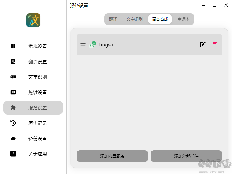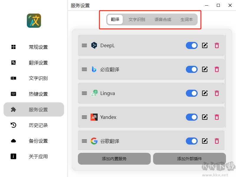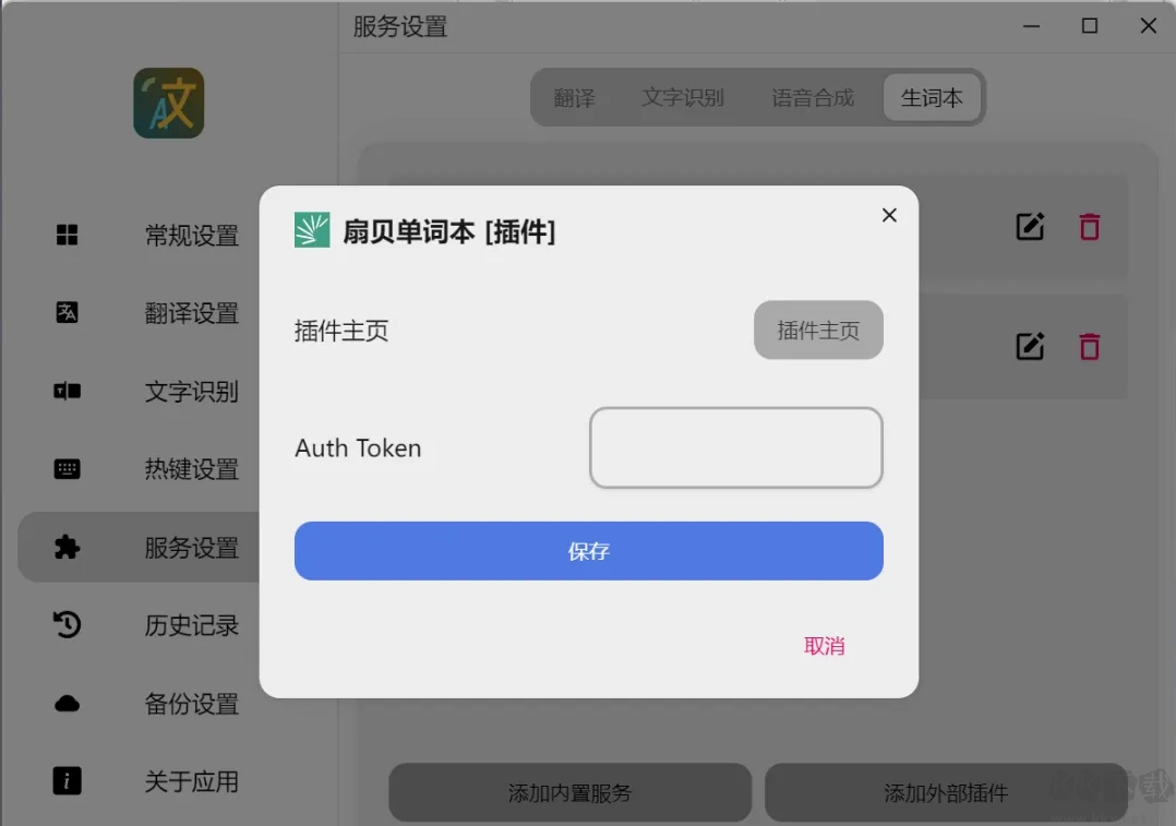 這是軟件的核心功能。你可以在這里添加翻譯、文字識(shí)別、語音朗讀和生詞本等服務(wù)接口。