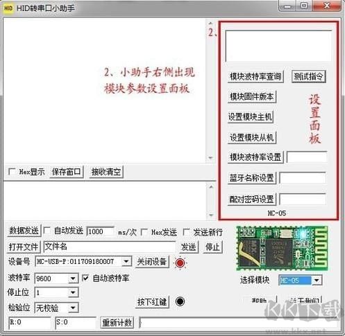 啟動HID轉串口小助手軟件,選擇HC-05模塊類型。