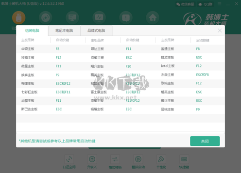 不同品牌的電腦主板快捷鍵可能不同,可以在“U盤啟動(dòng)”模式下點(diǎn)擊右下角的“快捷鍵”查看。