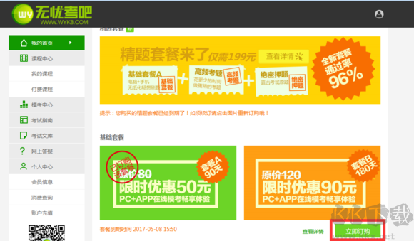 訂購完成后,頁面左上角會顯示“已訂購該套餐”的標志;