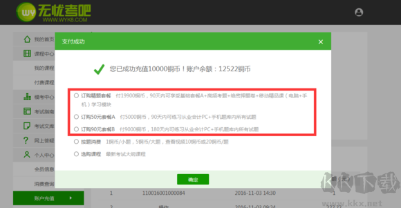 充值成功后,系統(tǒng)會彈出套餐選擇窗口,選擇想要訂購的套餐并點擊“確定”。