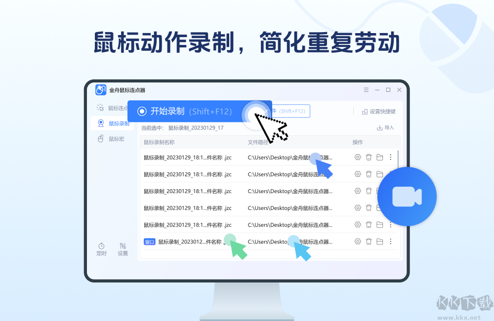 動(dòng)作錄制:可記錄并重放鼠標(biāo)動(dòng)作,避免重復(fù)操作,節(jié)省時(shí)間。
