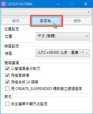 步驟三:設(shè)置完成后,點擊“另存為...”按鈕保存設(shè)置,日后只需右鍵點擊程序即可快速選擇并執(zhí)行所需語言。