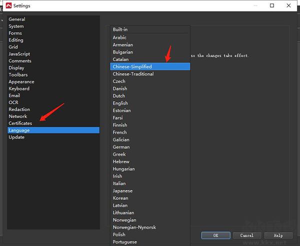 3、在彈出的設置窗口中,找到Language(語言)選項并選擇簡體中文;