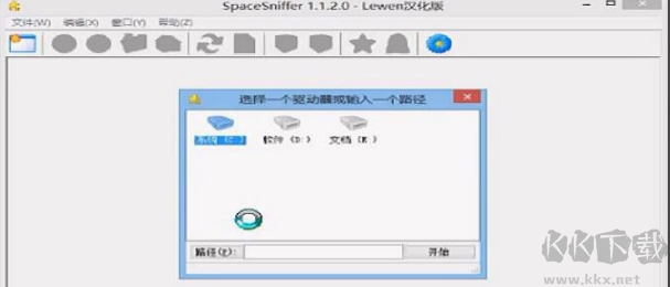 2. 打開軟件后,點(diǎn)擊左上角指定位置,選擇需要分析的盤符或路徑,軟件就會(huì)開始掃描并展示該位置的磁盤空間使用情況。