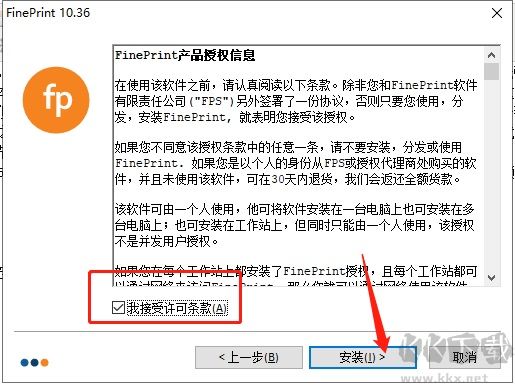 3、閱讀并勾選許可協(xié)議,然后點(diǎn)擊“安裝”按鈕開(kāi)始安裝。