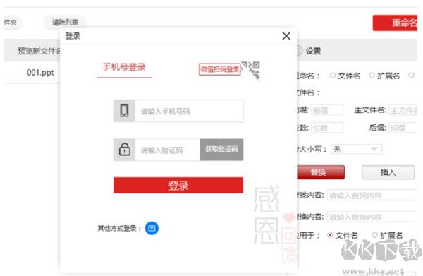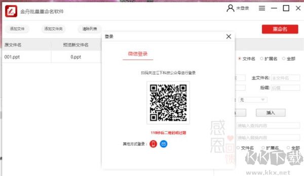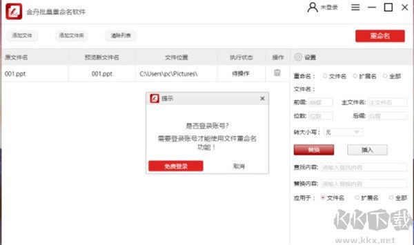 8、將文件添加至軟件后,點(diǎn)擊“重命名”按鈕即可開始批量重命名文件。如果未登錄軟件,系統(tǒng)會提示用戶進(jìn)行登錄。
