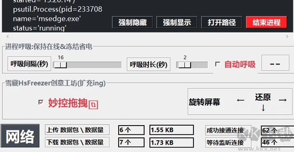 凍結(jié)后,無論凍結(jié)多長時間,雙擊列表項即可快速恢復,特別適合內(nèi)存占用較大的游戲玩家,值得一試。