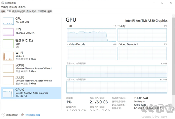 可以看到,在測試電腦上顯卡的使用率也較高。