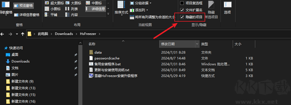 如果文件管理器中沒有找到data文件夾,請勾選顯示隱藏文件選項。