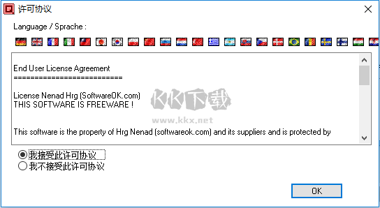 1. 首先在本站下載Q-Dir壓縮包并解壓,運(yùn)行安裝程序。第一次啟動(dòng)時(shí),軟件會(huì)要求選擇語(yǔ)言,點(diǎn)擊中國(guó)國(guó)旗圖標(biāo)即可切換為簡(jiǎn)體中文。