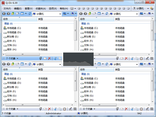 1. 啟動(dòng)Q-Dir后會(huì)顯示四個(gè)窗口,允許在同一個(gè)界面中訪問(wèn)不同盤符和多個(gè)文件夾。用戶可以在這些窗口中執(zhí)行文件復(fù)制、粘貼、移動(dòng)等操作。