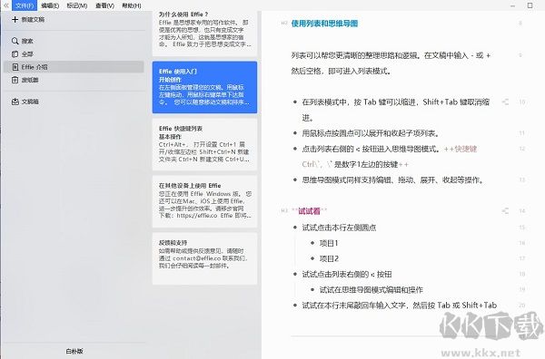 Effie新版:這是一款專為思想家設計的寫作工具,界面簡潔清新,操作方便,且完全免費。用戶可以自由地進行創(chuàng)作,同時能夠高效地編輯文章內(nèi)容。軟件支持將文字摘要和大綱快速轉(zhuǎn)化為思維導圖模板,幫助用戶輕松理清文章結(jié)構(gòu)。感興趣的朋友可以下載試用哦!