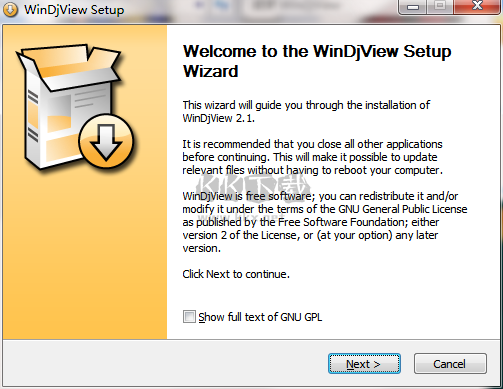 1、首先在本站下載DJVU閱讀器的安裝包,下載后你會得到一個.zip文件,雙擊其中的.exe文件啟動安裝程序。隨后,安裝向導會自動打開,點擊“Next”【下一步】繼續(xù)。