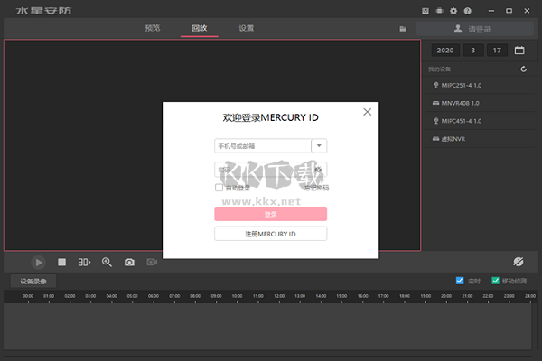 在客戶端右上角點(diǎn)擊【請(qǐng)登錄】,并輸入與攝像頭或錄像機(jī)綁定的MERCURY ID進(jìn)行登錄。