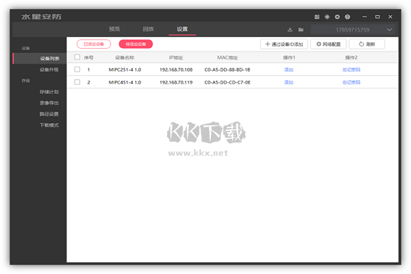 進(jìn)入【設(shè)置>設(shè)備列表>待添加設(shè)備】,刷新后可以查看局域網(wǎng)內(nèi)未添加的攝像頭。點(diǎn)擊【添加】按鈕,默認(rèn)用戶名為admin,密碼為空。
