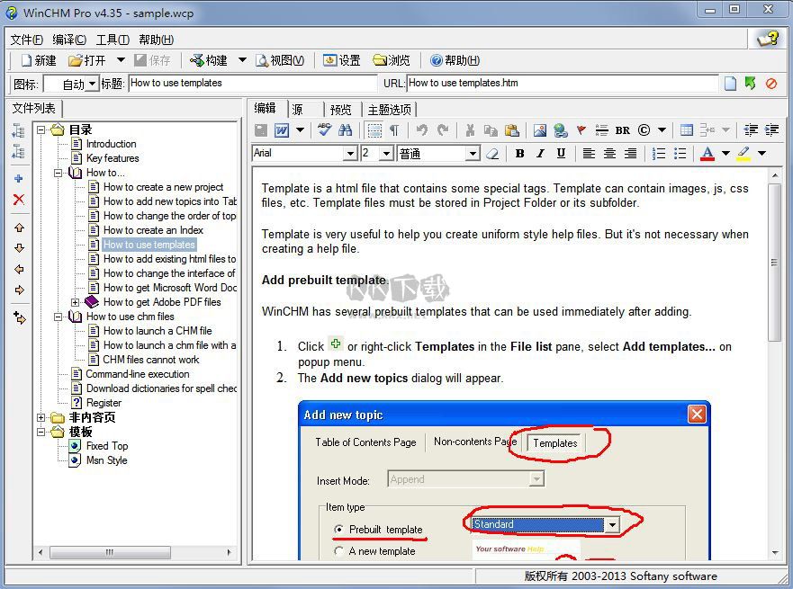 1、支持模板功能——輕松制作統(tǒng)一樣式的HTML幫助文件。